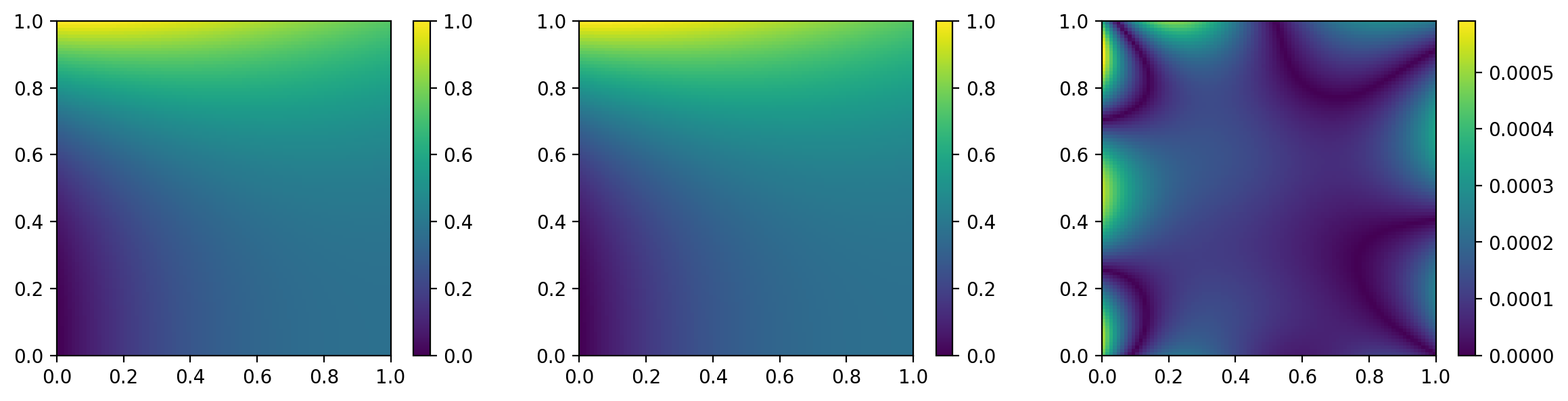 fe = torch.exp(-be[:, 0:1]) * (be[:, [0]] - 2 + be[:, [1]] ** 3 + 6 * be[:, [1]])从而这四个边界处的残差为: